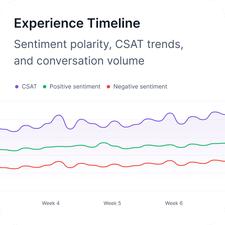 Track volume, sentiment, and shifts per topic — not vanity metrics.